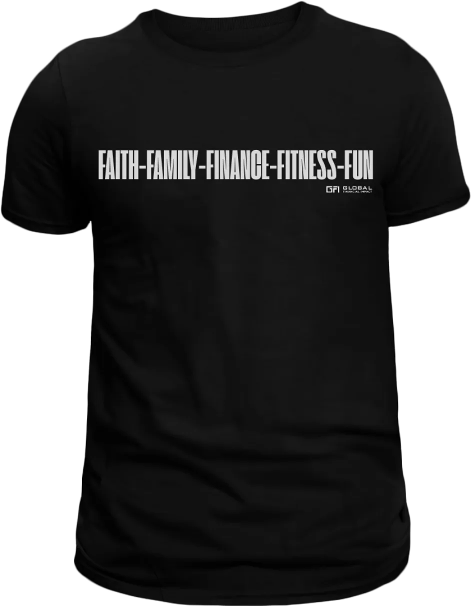 Show the world what you stand for with the bold and powerful 5Fs Tee. Featuring the pillars of the GFI mindset — Faith, Family, Finance, Fitness, and Fun — this shirt isn’t just apparel, it’s a declaration.
