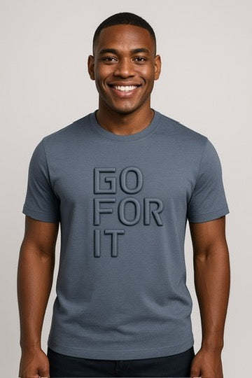 This bold tee features 3D puffy lettering that jumps off the fabric and straight into your mindset. With “GO FOR IT” embossed across the chest and GFI branding on the sleeve, this shirt speaks your ambition before you even say a word.