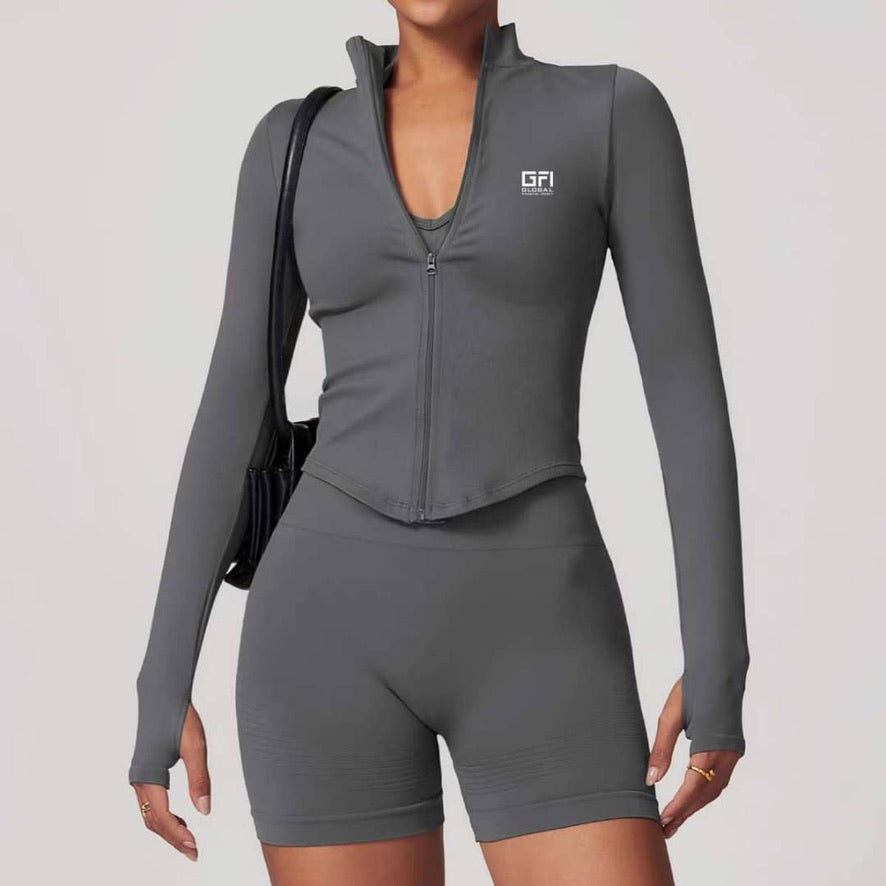Elevate your everyday look with the Women’s FlexFusion Jacket by Alo. Designed in a sleek grey color, this jacket offers a fitted silhouette that flatters your shape while keeping you comfortable all day long. Made with soft, stretchy fabric, it moves with you—perfect for workouts, casual wear, or layering on the go.